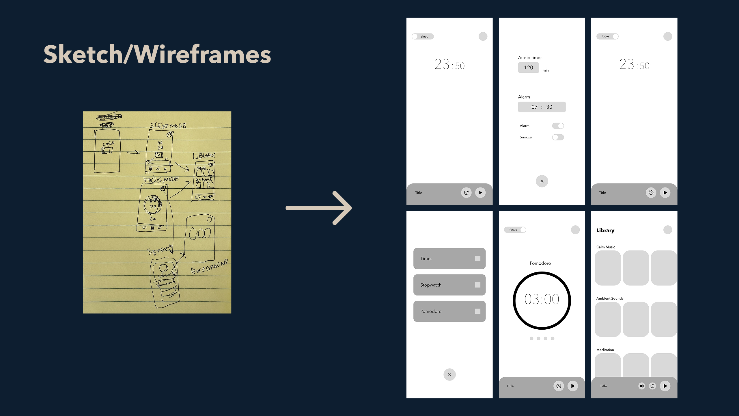 The final design is a clean, minimal interface that allows users to switch between Sleep Mode and Focus Mode depending on their goal.
