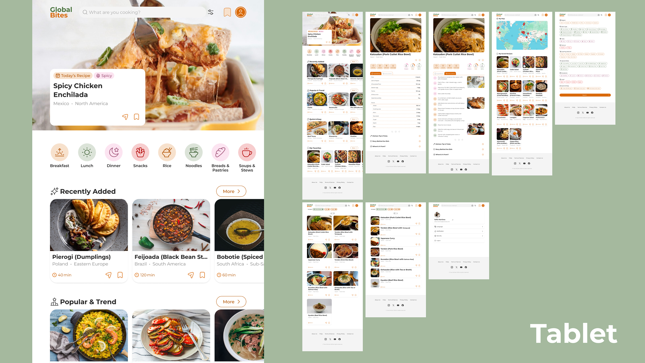 The final result was a responsive global recipe website that successfully translated the original app concept into a web experience. The website allows users to discover international recipes while also learning about the cultural stories behind them, combining usability with educational value.