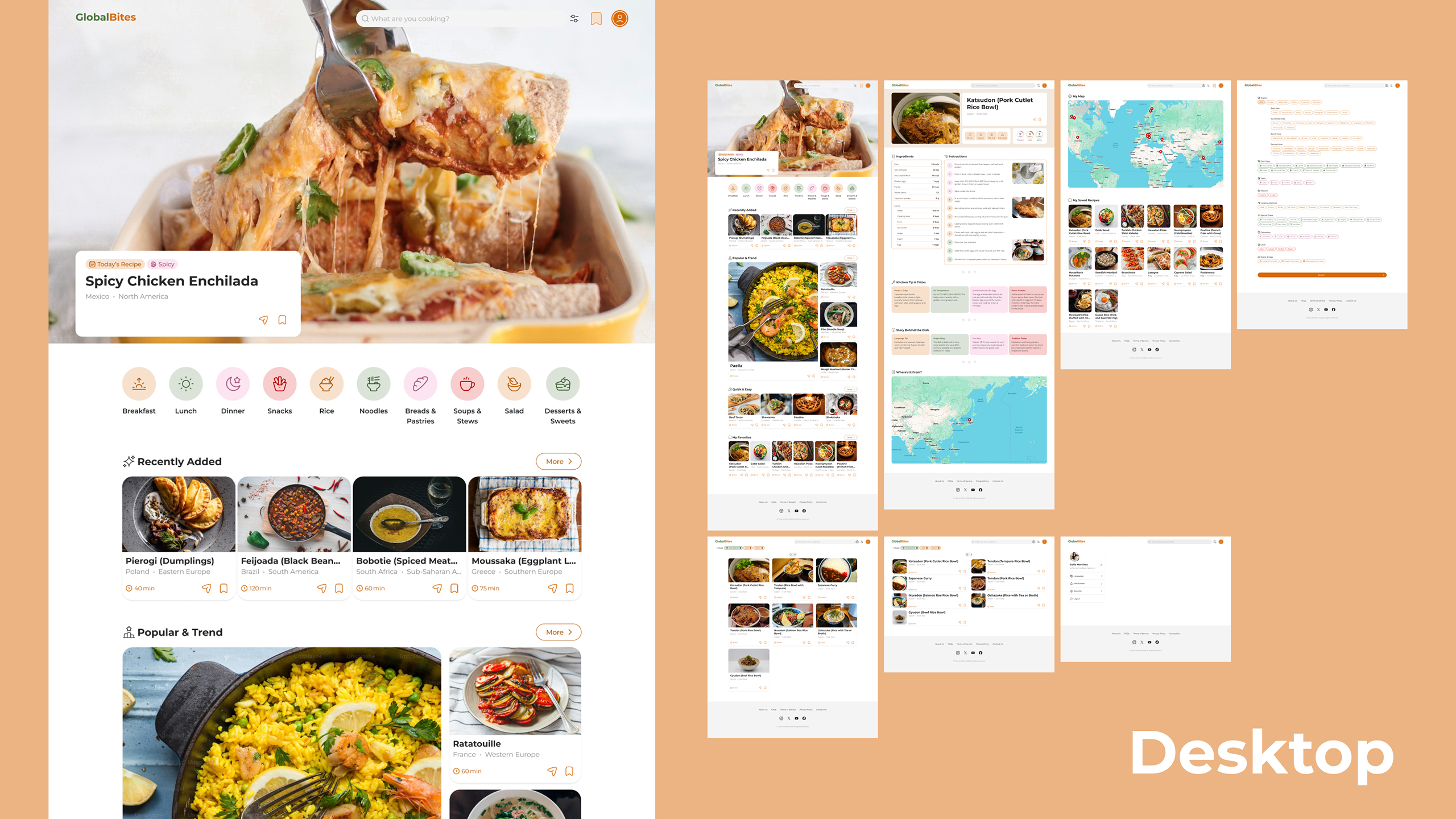 This project began when a friend of mine, who is a developer, wanted to create a recipe website for his portfolio. At the same time, I already had a draft design for a global recipe app that I had created previously. We decided to collaborate and adapt my existing app design into a website version that would better fit his development goals.