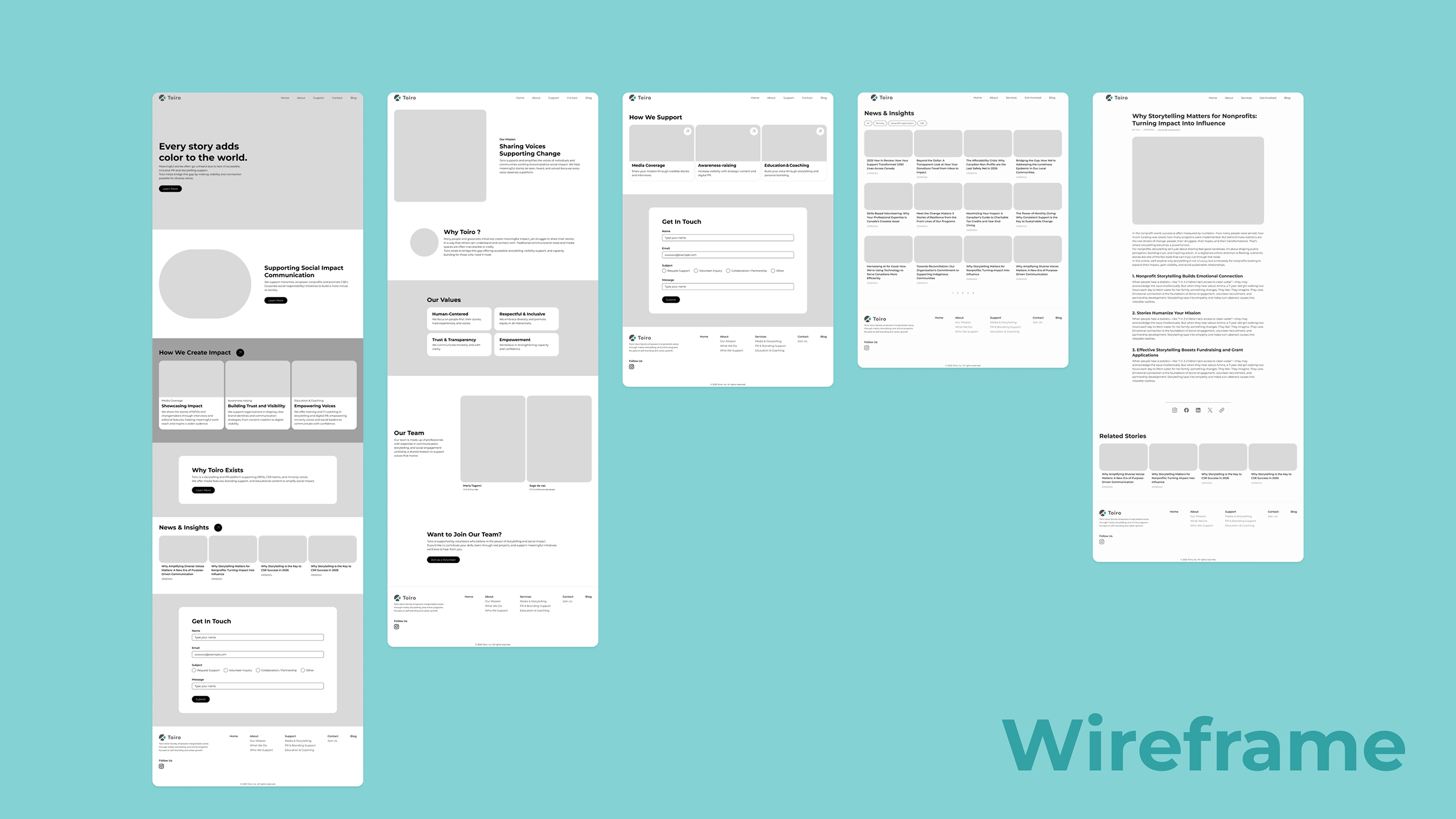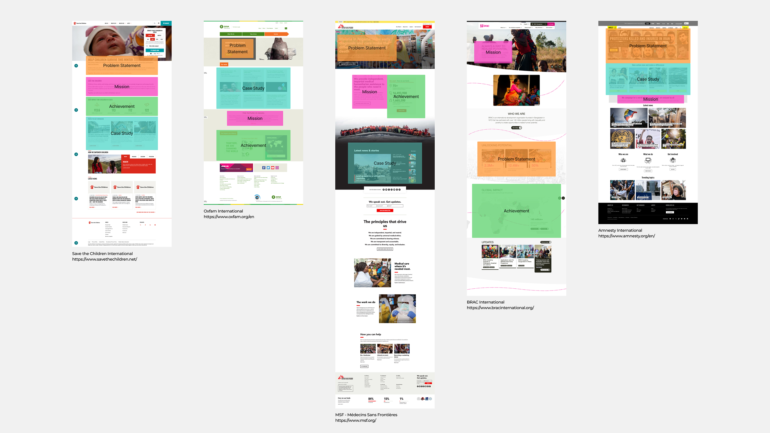 I began by reviewing the existing website and content. The CEO requested that the homepage feel more like a nonprofit website, so I researched some NPO sites to understand common patterns and content structure. Through this research, I identified key elements such as problem statements, mission statements, achievements, and case studies.